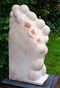 Het mooie van Portugees marmer is dat ik het zo kan bewerken dat het licht doorlaat. Het materiaal is geschikt voor buiten en ook mooi als gedenksteen.
